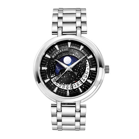 นาฬิกากลไกกันน้ำของผู้ชายทำจากสเตนเลสใหม่ล่าสุดแสดงดวงจันทร์ตามปฏิทินพลังงาน